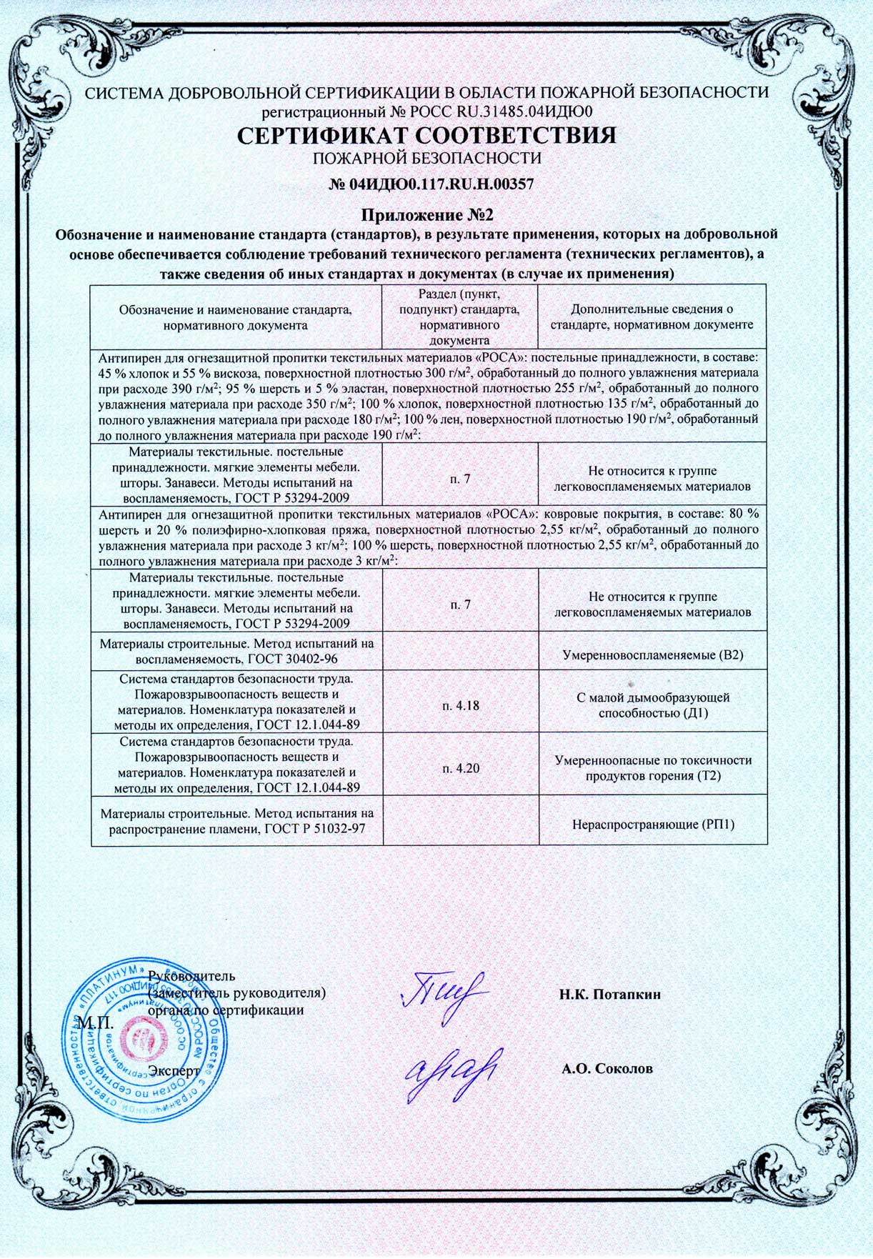 «Антипирен для огнезащитной пропитки текстильных материалов «РОСА» от 25.07.2023г.